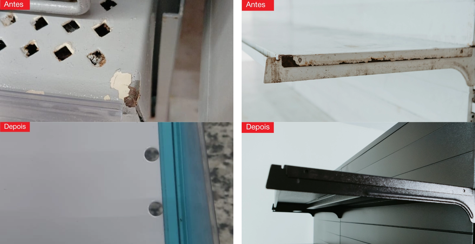 Não. Nossa atuação é focada na renovação estrutural e estética do balcão e das prateleiras refrigeradas.