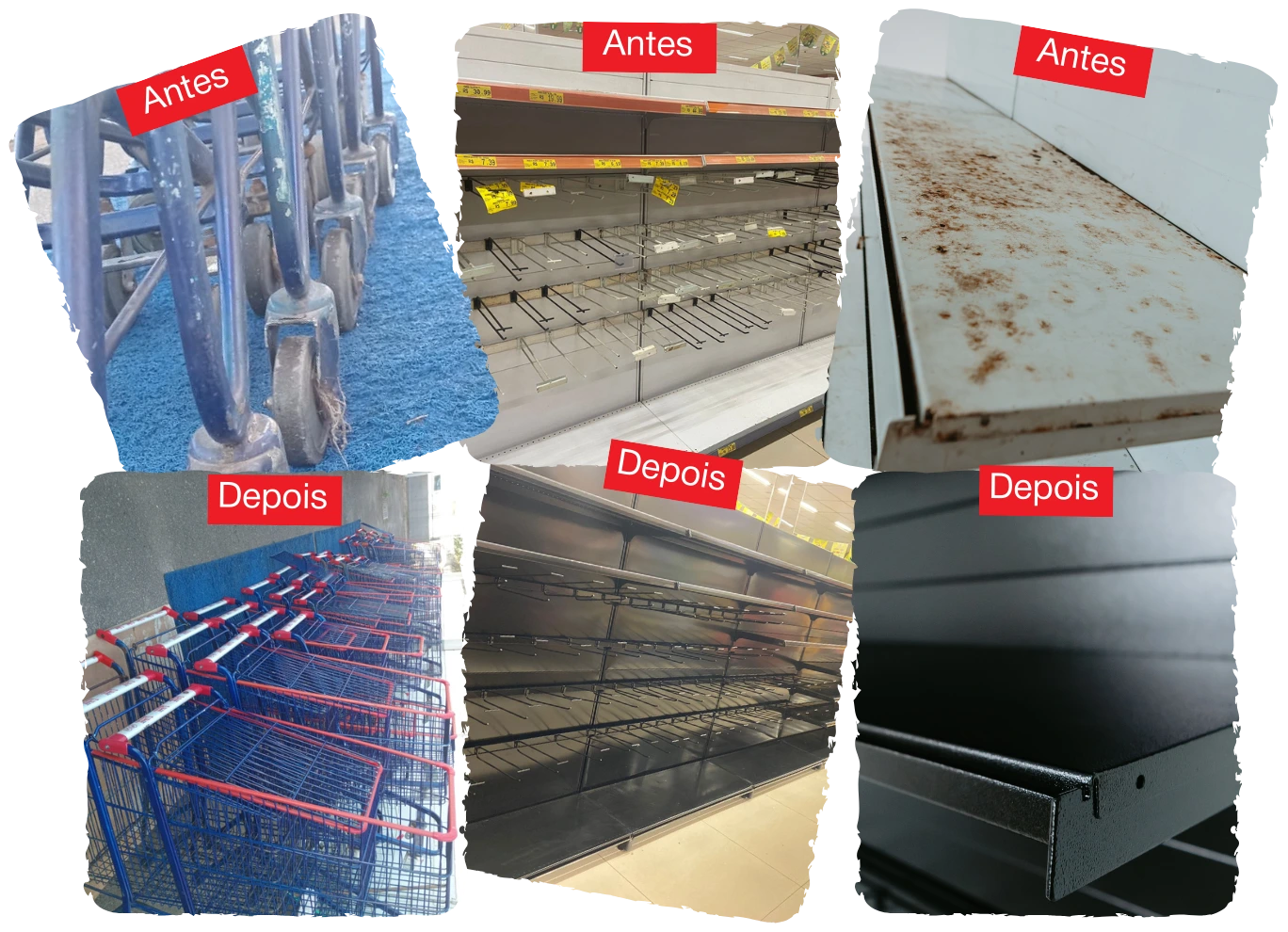 Somos a única empresa do Brasil com processo completo de renovação de carrinhos, gôndolas e balcões refrigerados, oferecendo equipamentos e técnicas de ponta. Além disso, também oferecemos manutenção de carrinhos diretamente na loja para garantir a agilidade que o seu supermercado precisa.